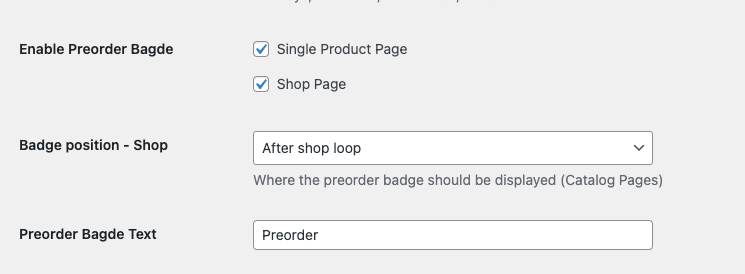 Enhancement: Preorder badge option for catalog pages and single product page. also, support [preorder_badge] shortcode for displaying the badge on a single product page or loop.