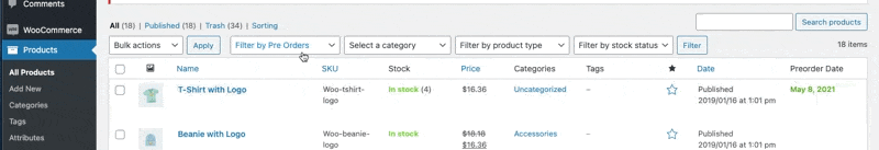 Enhancement: Filter product by preorder at admin dashboard: Products > All Products